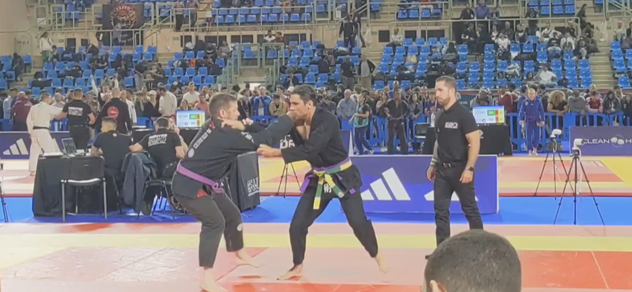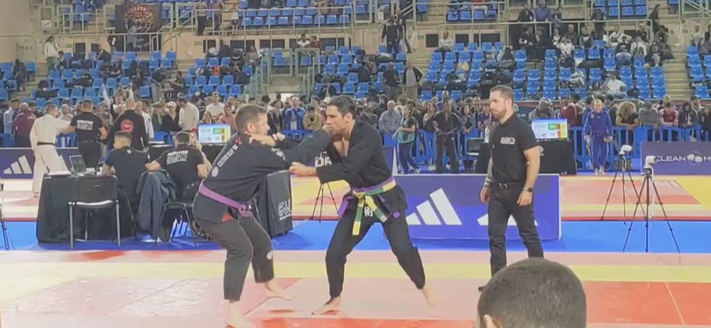 Pierrot pour sa première compétition en jjb (ceinture violette, master 3/4) se fait sortir au premier tour par soumission .